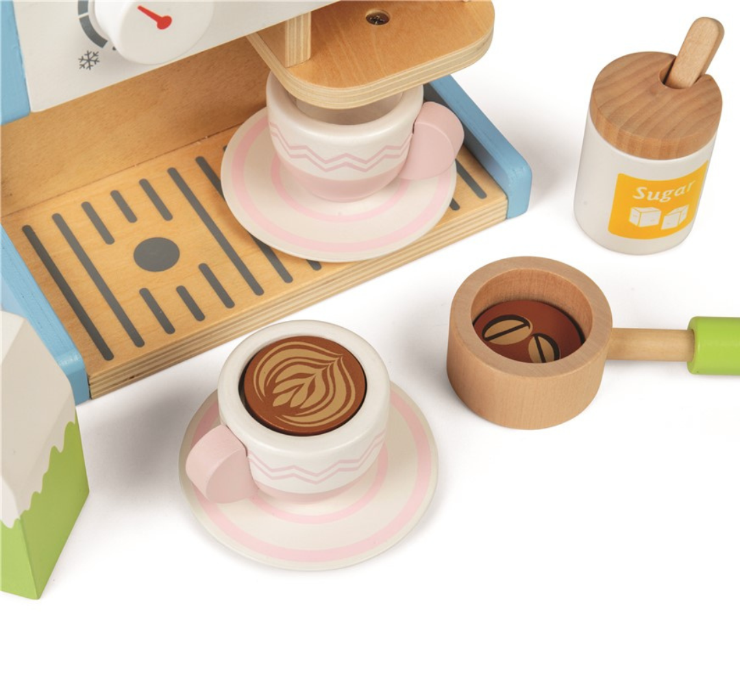 Con esta preciosa cafetera de madera, las niñas y niños podrán preparar sus bebidas favoritas como auténticos baristas.