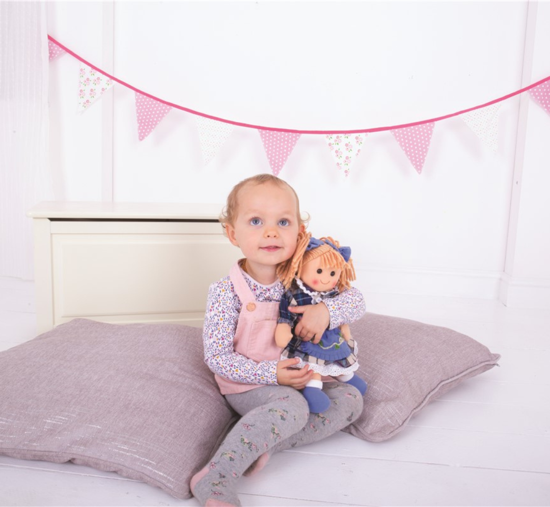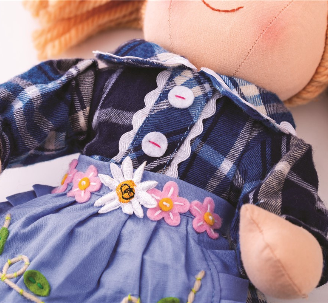 Esta adorable muñeca de tela está diseñada para acompañar a los más pequeños en horas de juego, cariño e imaginación.