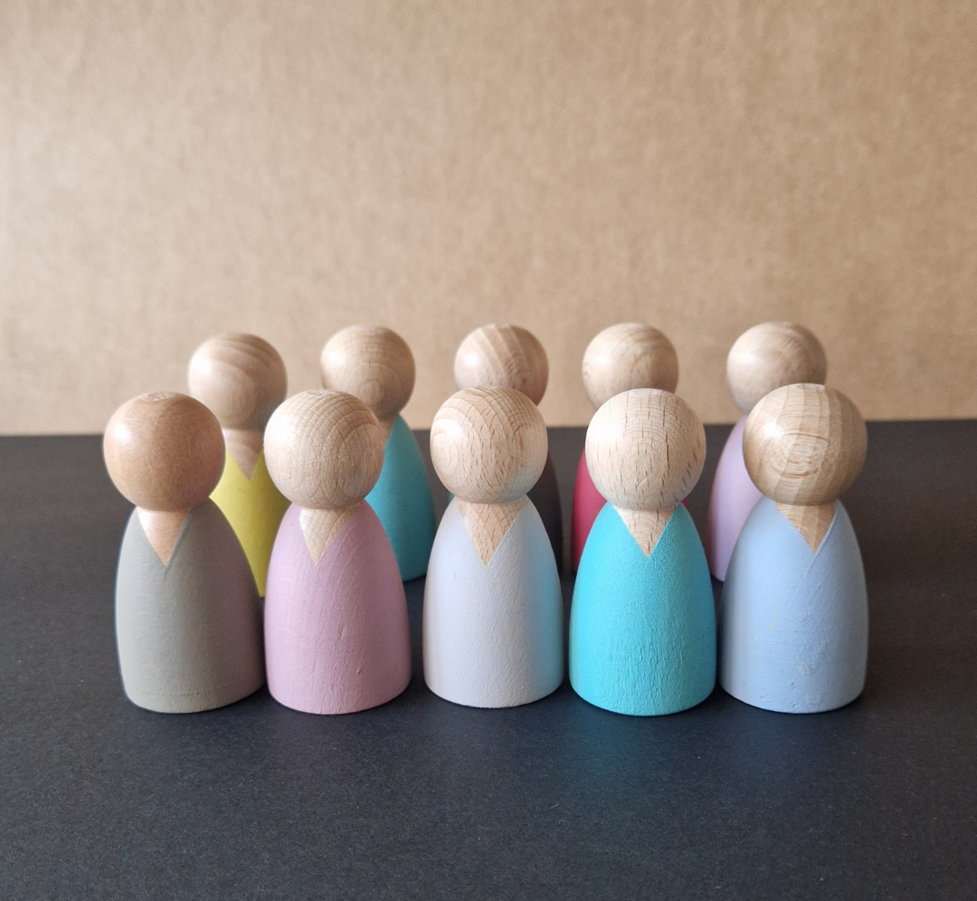 Este pack incluye 10 figuras fabricados con madera de haya y pintados a mano con bonitos colores.