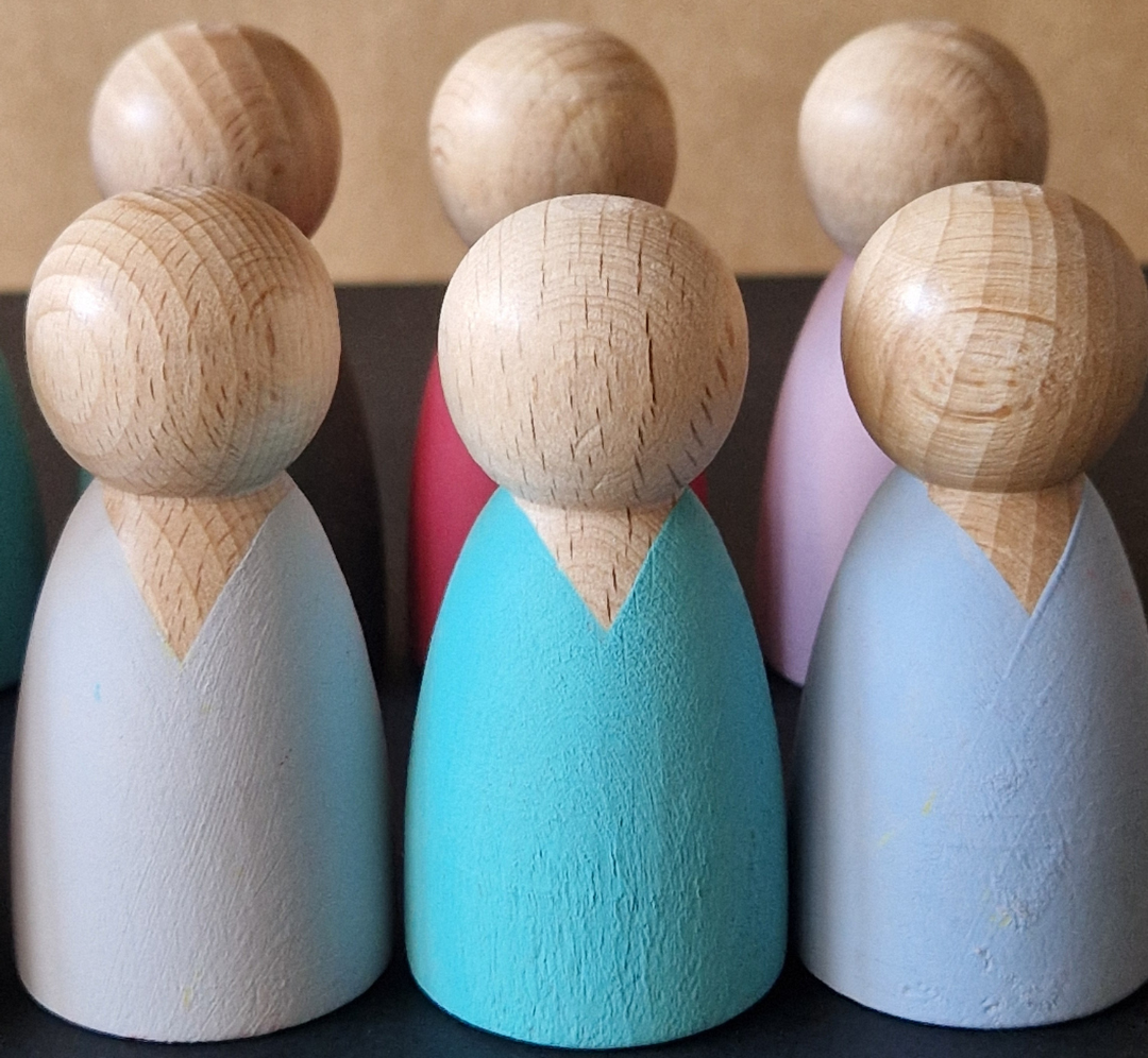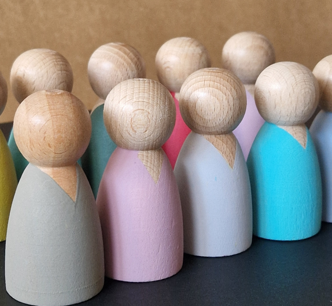 Estas encantadoras figuras de madera son perfectas para el juego libre, la decoración o actividades educativas. Su diseño simple, sin rasgos faciales, fomenta la imaginación y permite que los niños creen todo tipo de historias y personajes.