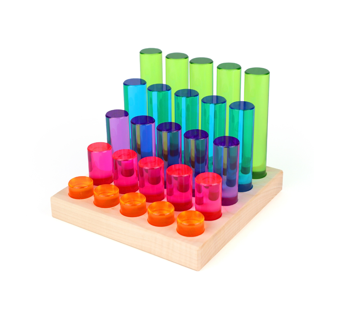 Estos pilares translúcidos son un elemento de juego realmente atractivo. Su transparencia invita a los niños y niñas a jugar con la luz y el color.